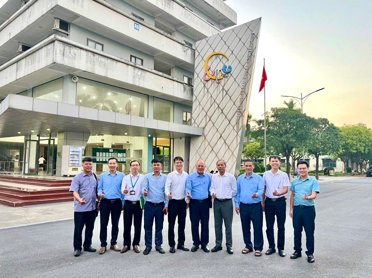 Đại diện lãnh đạo 2 đơn vị chụp ảnh lưu niệm tại Tòa nhà công nghệ ĐMST (CUWC)
