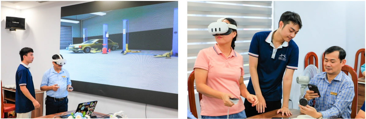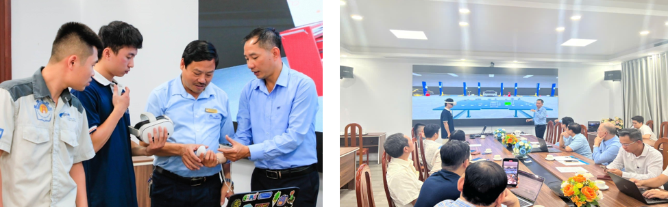 4) Doanh nghiệp: Tiếp nhận được nguồn nhân lực chất lượng cao sẵn sàng vào việc: giảm thời gian/ chi phí đào tạo lại; Mô phỏng quy trình - an toàn lao động ngay trước khi vào xưởng; Tham gia đồng thiết kế học phần cùng Nhà trường theo nhu cầu thực, cập nhật nhanh công nghệ mới; Đánh giá kỹ năng qua bài tập VR có số liệu khách quan; Tăng gắn kết Nhà trường - Doanh nghiệp, gắn hệ thống tuyển dụng hiệu quả.